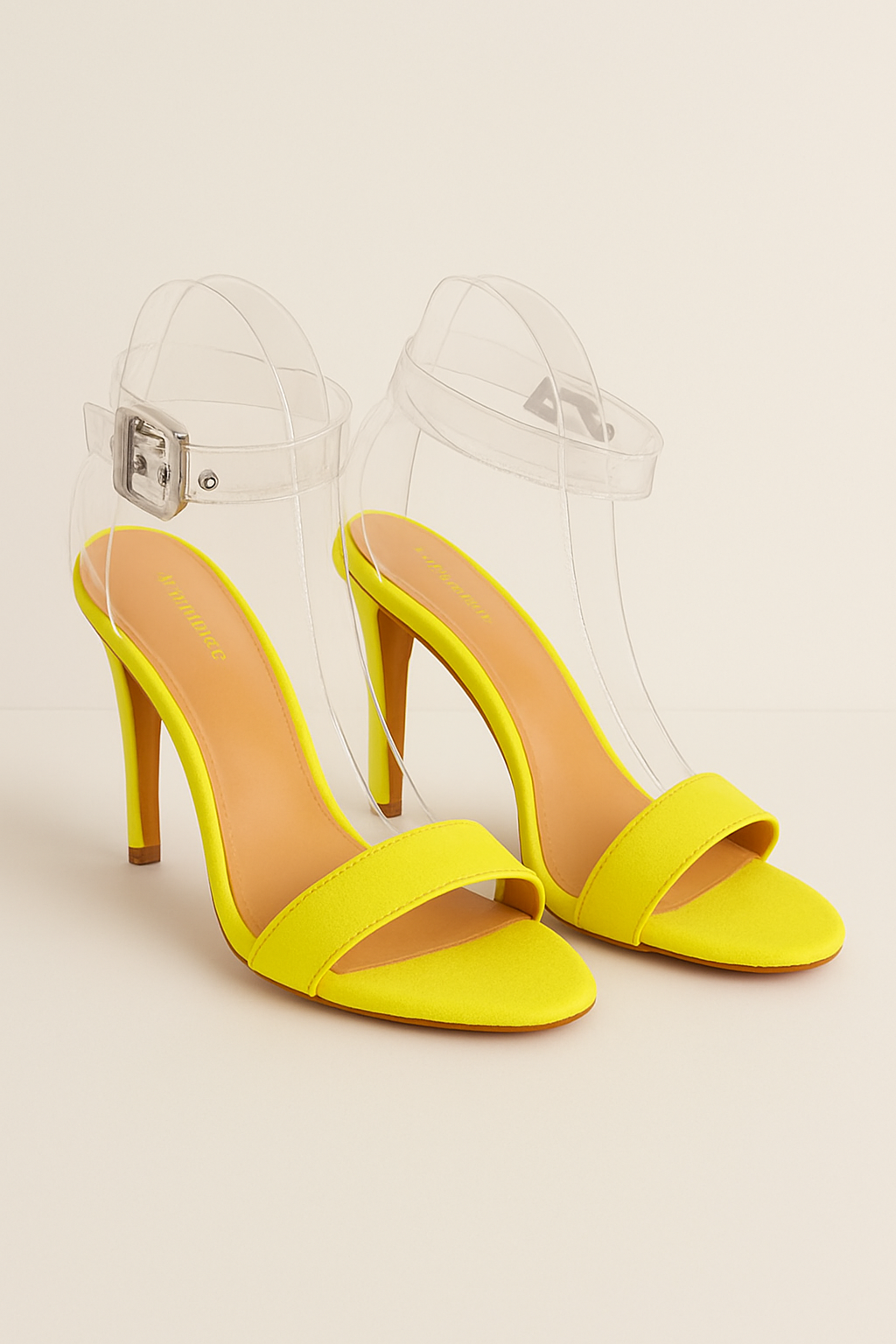 Designed with an open-toe silhouette and a 10 cm (approximately 4-inch) stiletto heel, The Zesty Stilettos elongate your legs while providing graceful height. The clear ankle strap with a silver buckle clasp ensures a secure, adjustable fit, while the padded insole keeps you comfortable throughout the day or night.